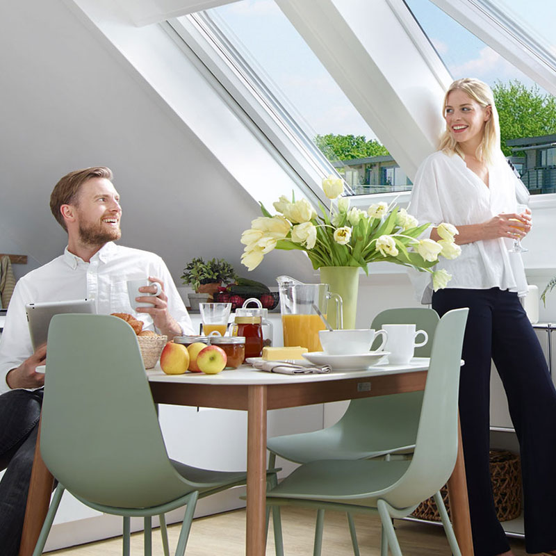 - Dachflächenfenster benötigen keinen zusätzlichen Raum zum Öffnen, wie es bei herkömmlichen Fenstern der Fall ist.